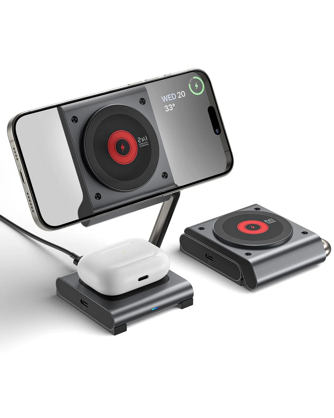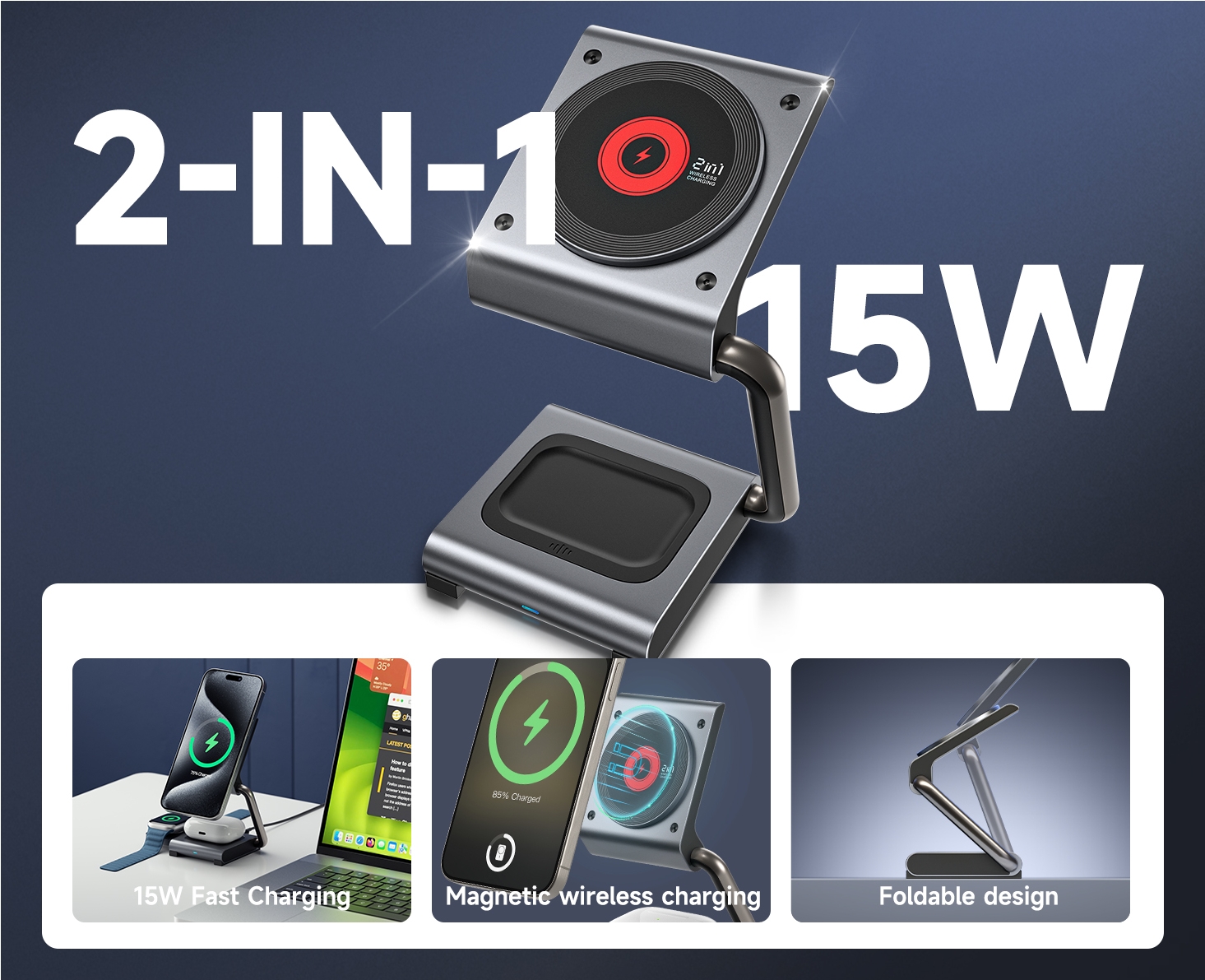 3-in-1 Qi Wireless Charging Station 27W Magsafe Fast Charging Base Portable Foldable Metal Magnetic Bracket Compatible With iPhone12-16 Full Range of Magnetic Charging